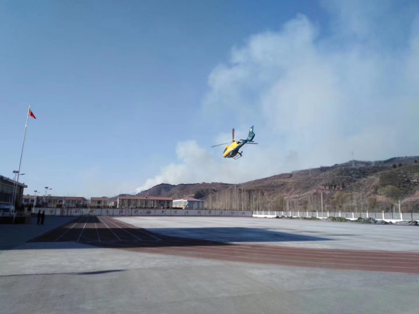 預警直升機接到通知后立即前往火災現場